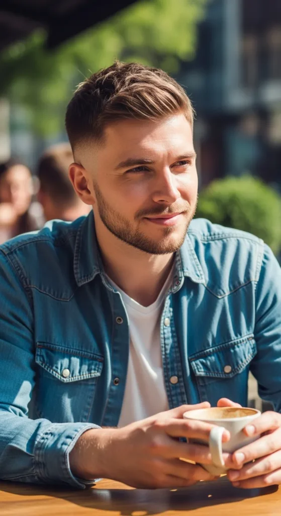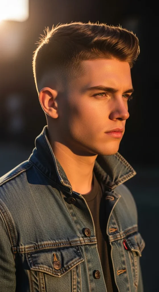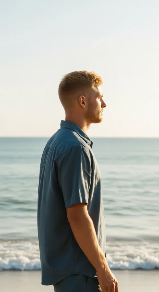 Sharp contrast between ultra-short sides and a slightly longer top creates a bold silhouette. It’s simple but instantly noticeable, especially under bright summer light.