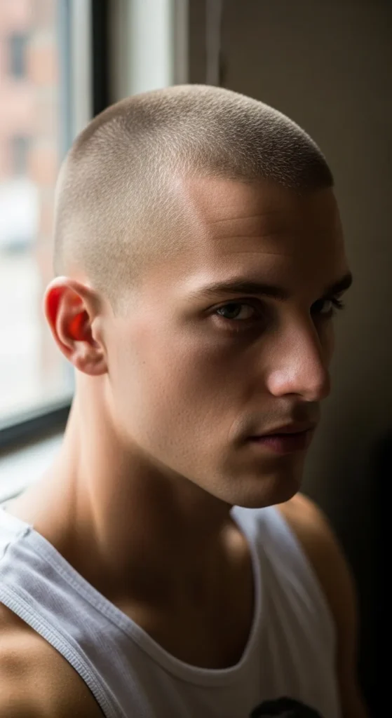 A super-close buzz that hugs the scalp, giving a sharp and confident appearance. It’s bold in its simplicity and feels incredibly freeing in hot weather.