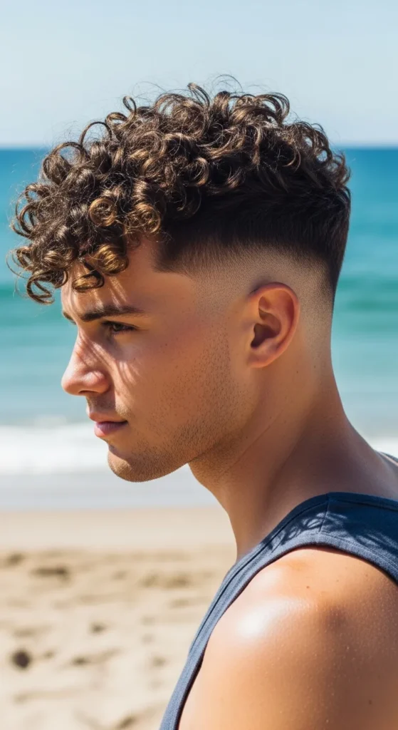 Natural curls paired with a skin fade create volume and personality while keeping the sides clean and cool. It’s bold yet easygoing for summer days.