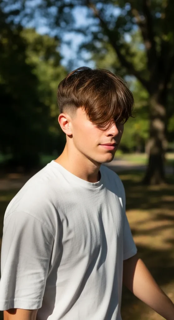 A loose, slightly messy fringe paired with a mid fade creates a carefree, youthful vibe. It’s relaxed, breathable, and perfect for guys who don’t want rigid styling.
