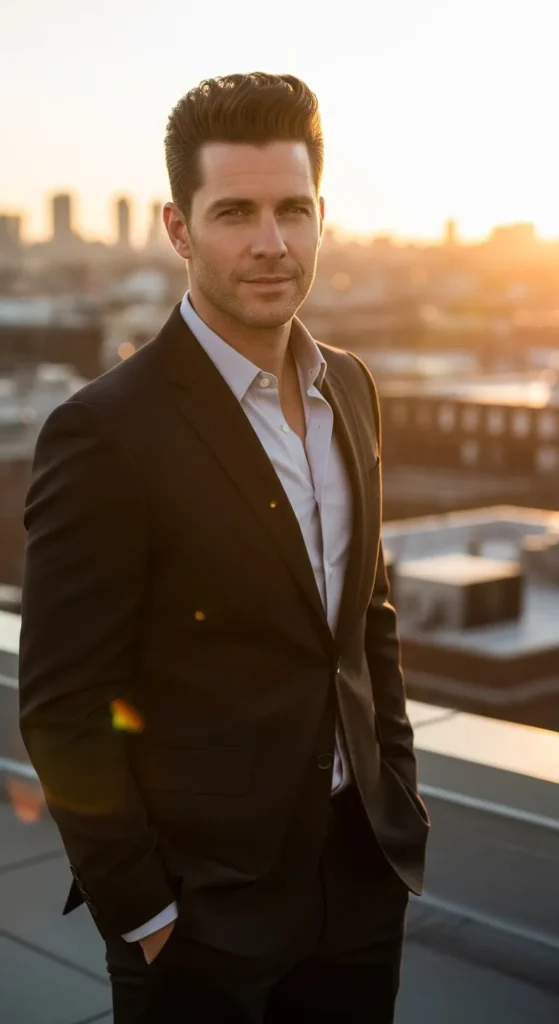 Barber Suggestion: Blow-dry upward with a vent brush to build height. Finish with a light hold spray to keep the quiff structured without collapsing in heat.