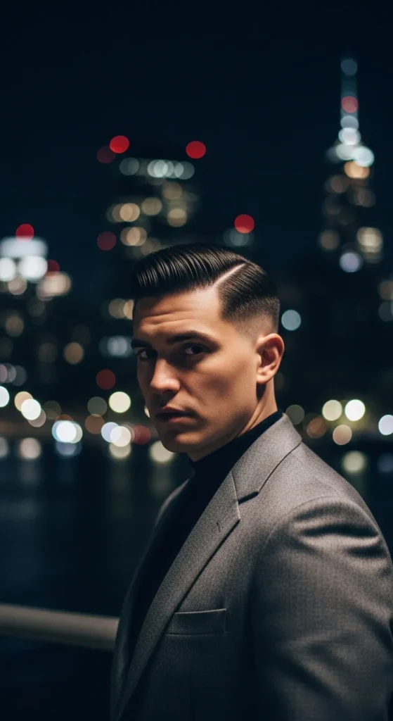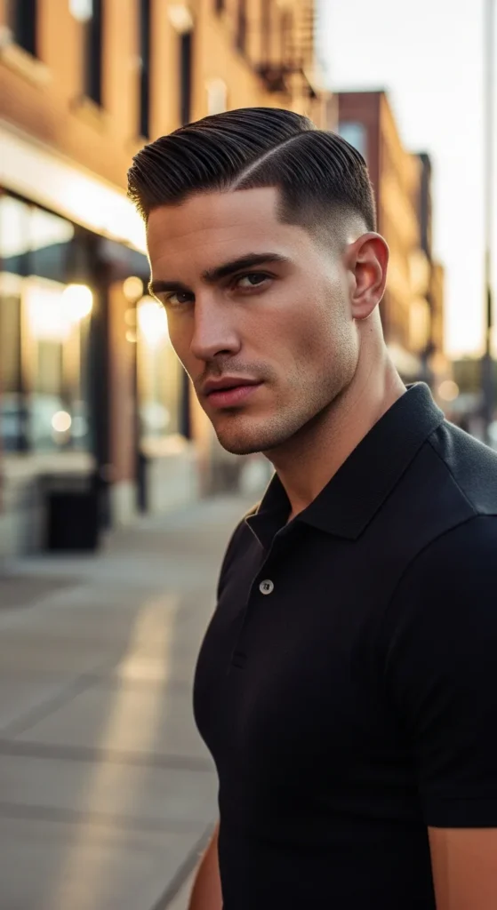 A modern slick back with a low fade delivers a sleek and confident look that stays off your face in the heat. It’s sharp, controlled, and timeless.