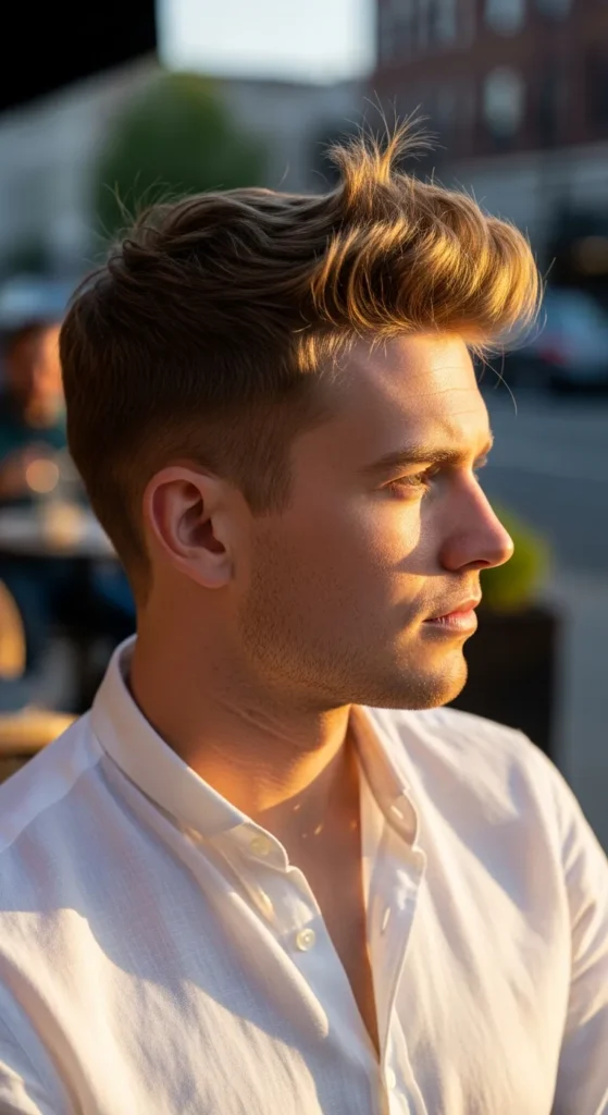 A lighter, scaled-down pompadour that avoids bulk but keeps the height. It’s ideal for fine hair wanting volume without weight.