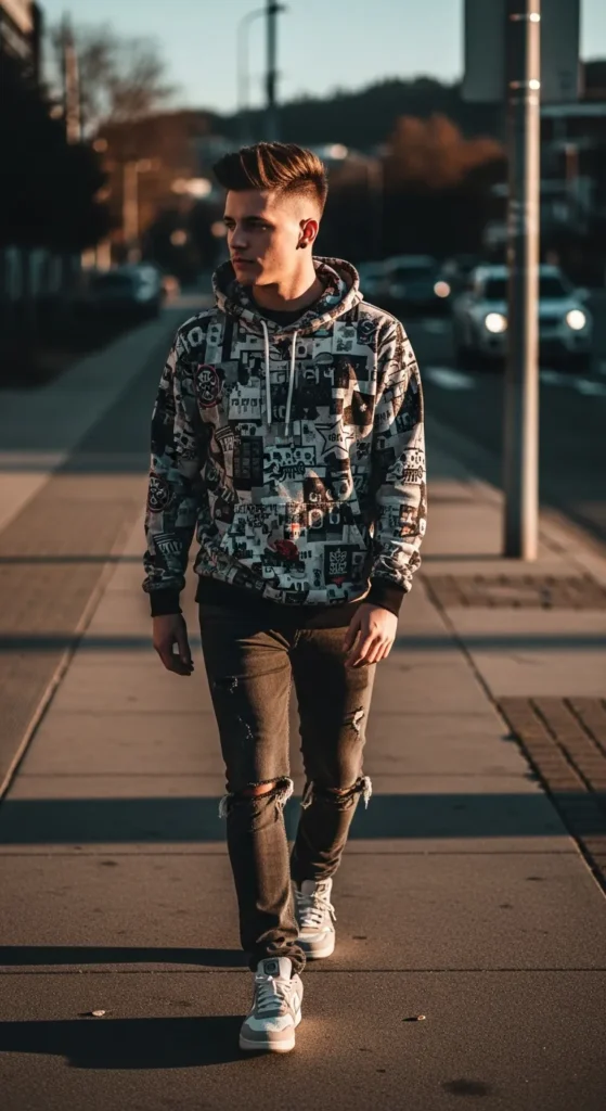 This isn’t a traditional comb over, it’s intentionally imperfect. The broken lines and uneven direction add dimension, making fine hair look thicker and more dynamic.
