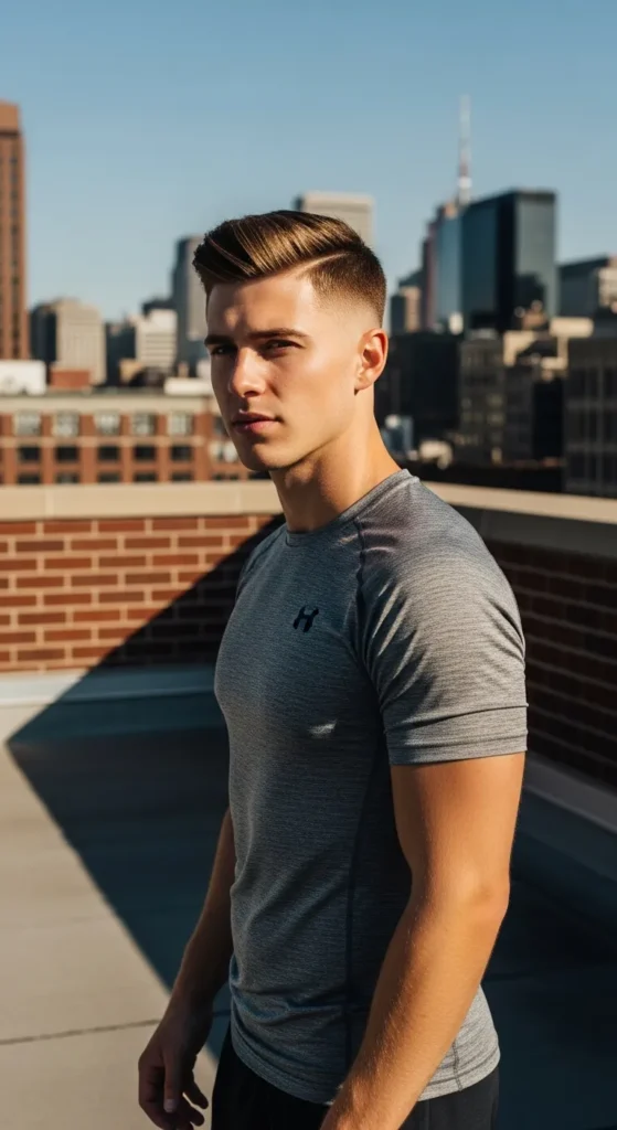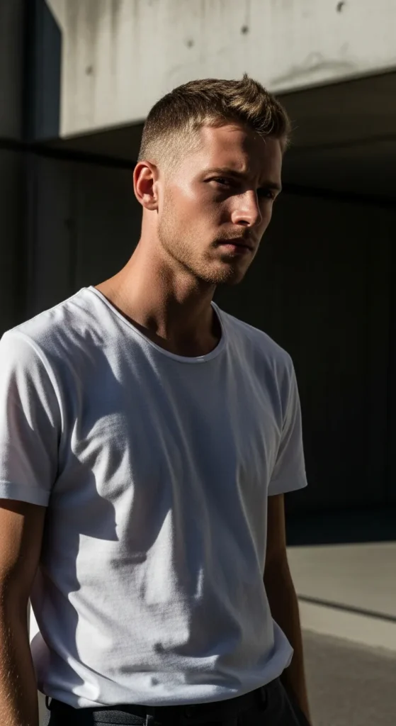 A modern take on the crew cut with slightly longer top layers that stand upright, giving subtle lift instead of flatness. Clean, sharp, but with hidden volume.