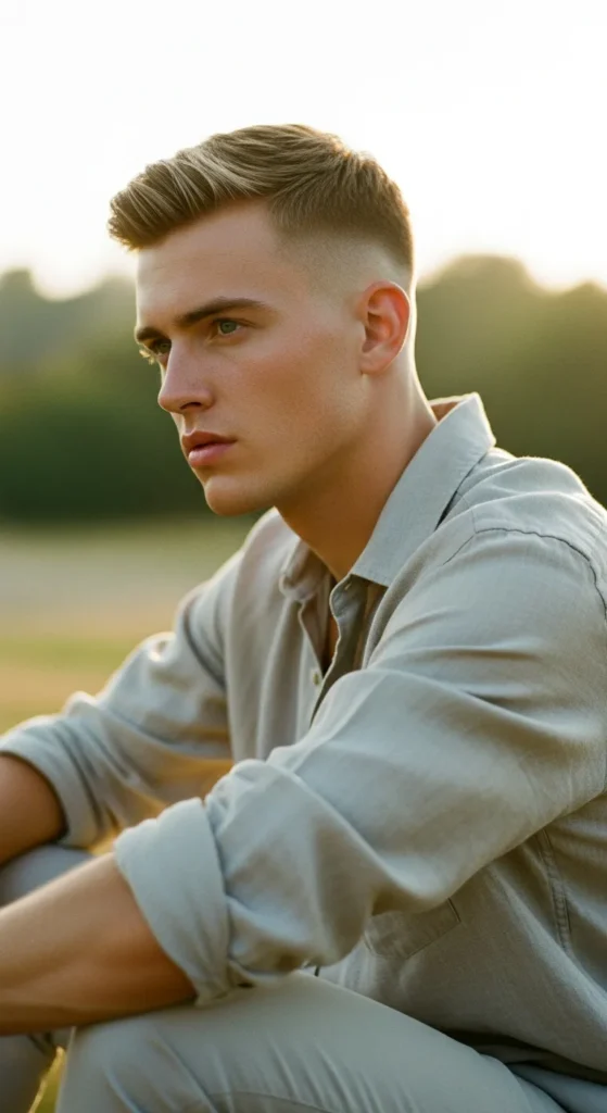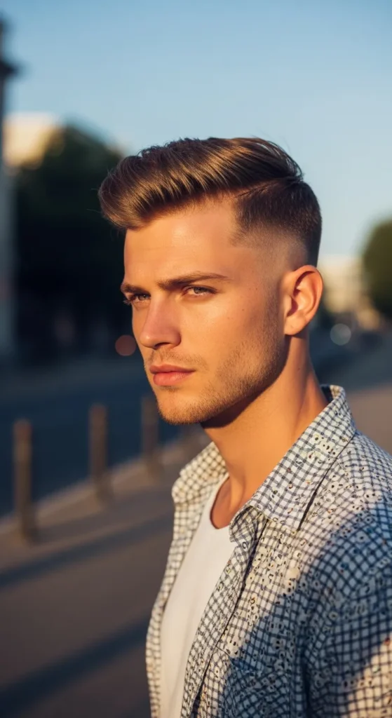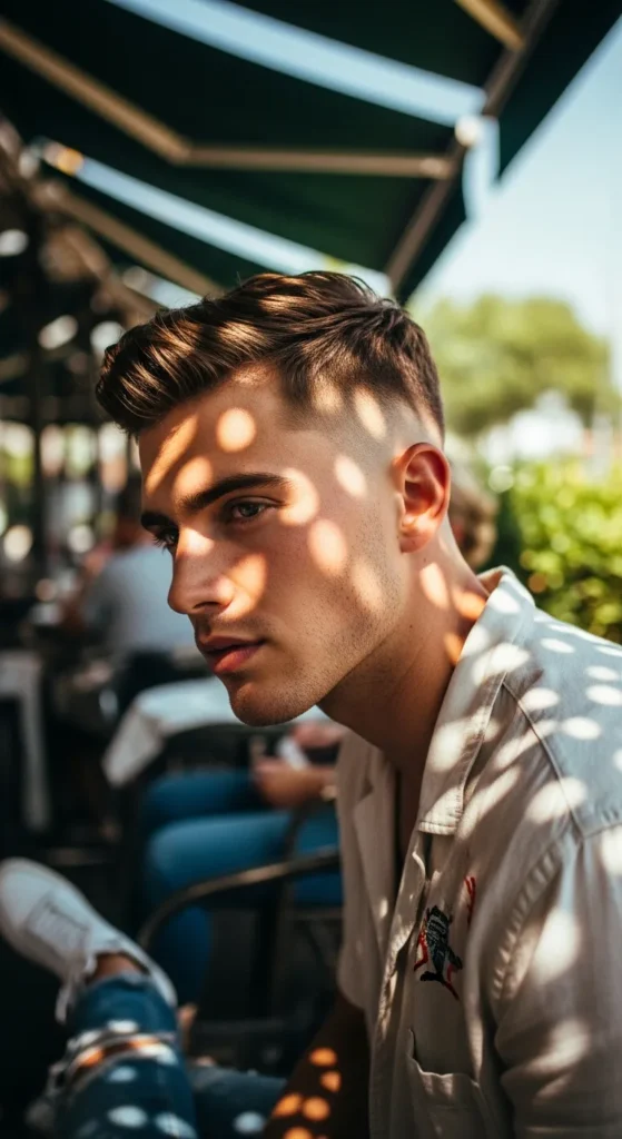 A tight fade around the sides with a soft, airy top that lets heat escape while keeping structure. It feels clean, modern, and effortless, perfect for long summer days without constant mirror checks.