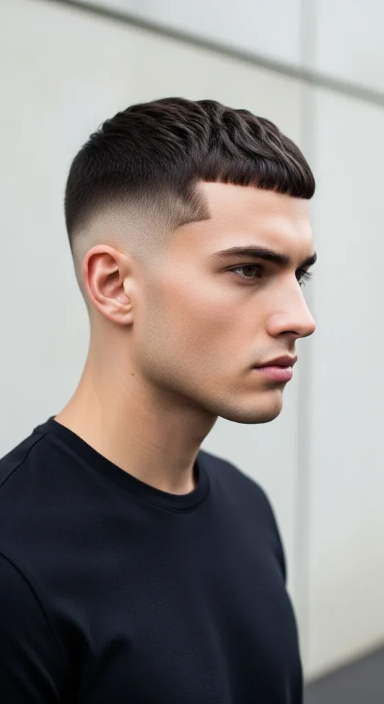 A refined buzz cut with clean edges that feels icy even on the hottest days. It’s bold, confident, and perfect for guys who want maximum comfort with minimal maintenance.
