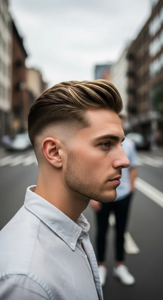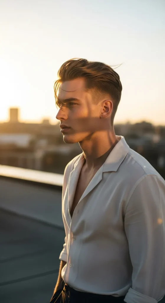 This haircut blends a smooth taper with a slightly longer top that catches light naturally. It looks fresh in daylight and sharp at night, making it a perfect all-day summer style.