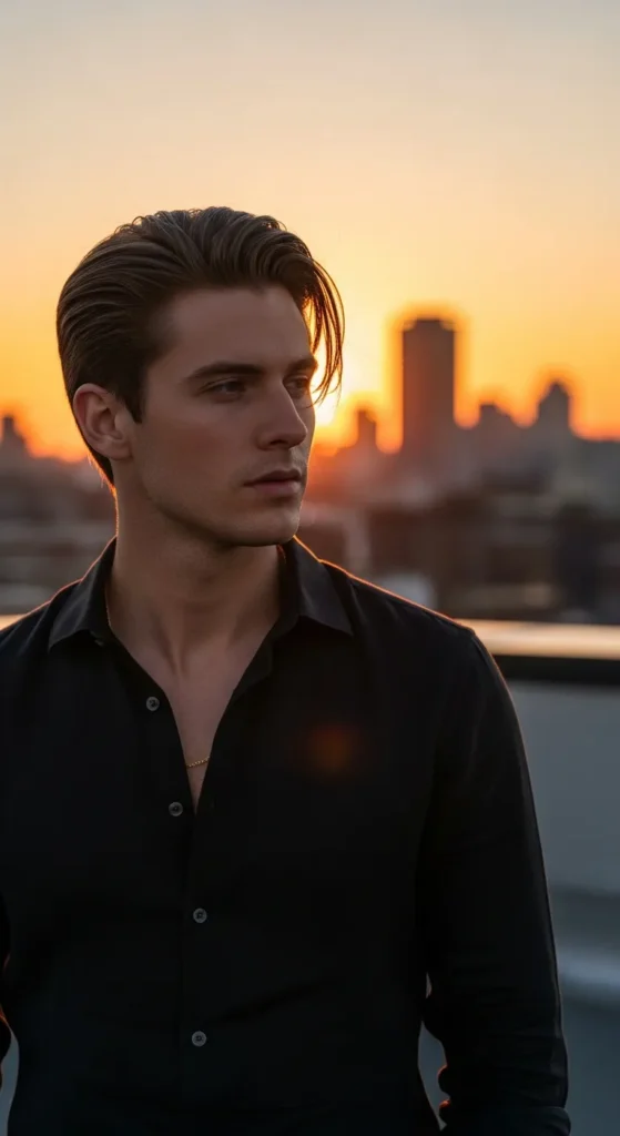 This is not your traditional heavy slick back. The airflow version keeps volume and separation, letting air pass through while still pushing hair backward. It feels free, slightly messy, and effortlessly stylish, ideal for summer nights when you want structure without looking overstyled.