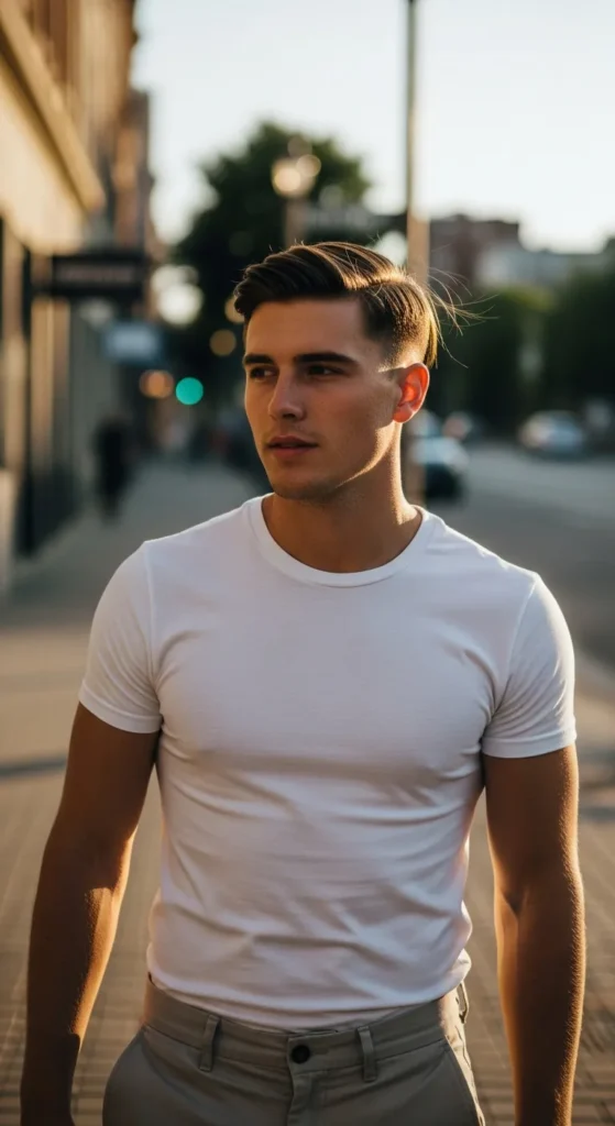 Barber Suggestion: Maintain the part line every two weeks to keep it crisp. Use a fine-tooth comb and light pomade to define it. This ensures the style doesn’t fade into a messy look and keeps the sharpness intact despite heat and sweat.