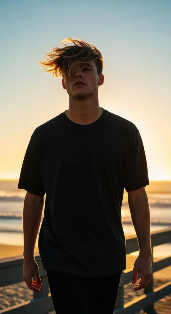 Barber Suggestion: Request light layering instead of blunt cuts to keep the fringe airy. Blow-dry forward with fingers instead of a brush to avoid stiffness. This technique allows natural movement and keeps sweat from weighing down the front, maintaining that effortless flow throughout the day.