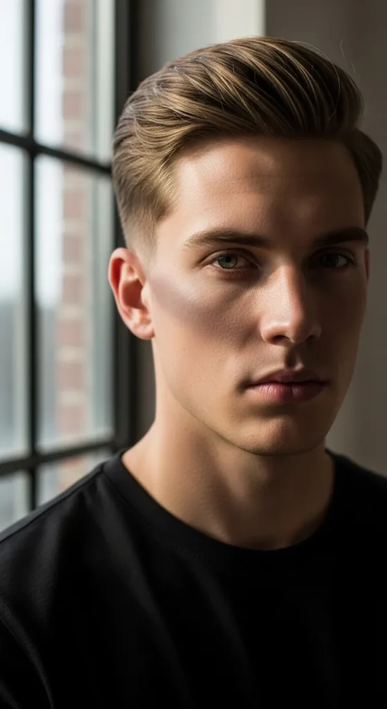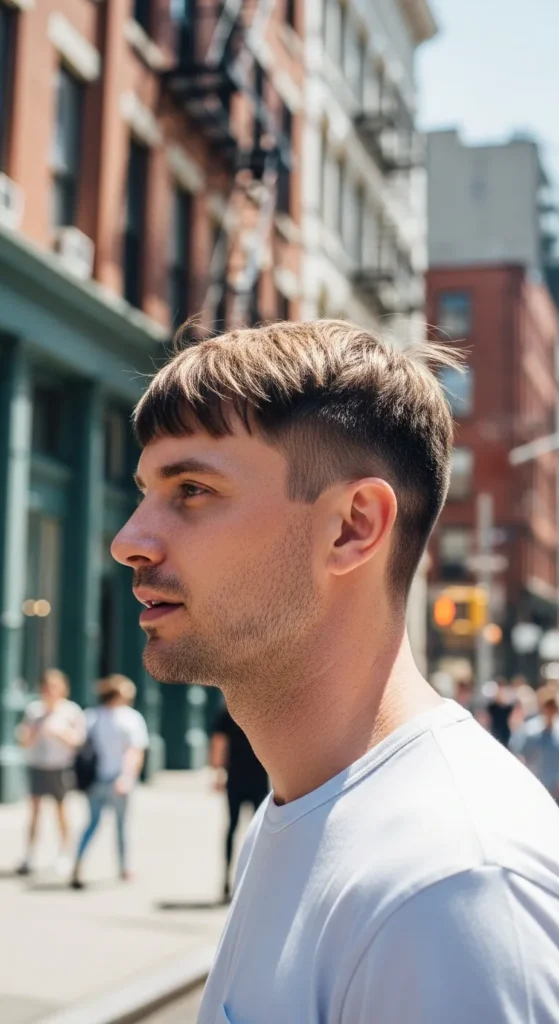 This cut keeps things short but not boring. The top is brushed up slightly for lift while the sides remain neat and balanced. It’s a go-to for guys who want a clean look that still has personality without needing constant attention.