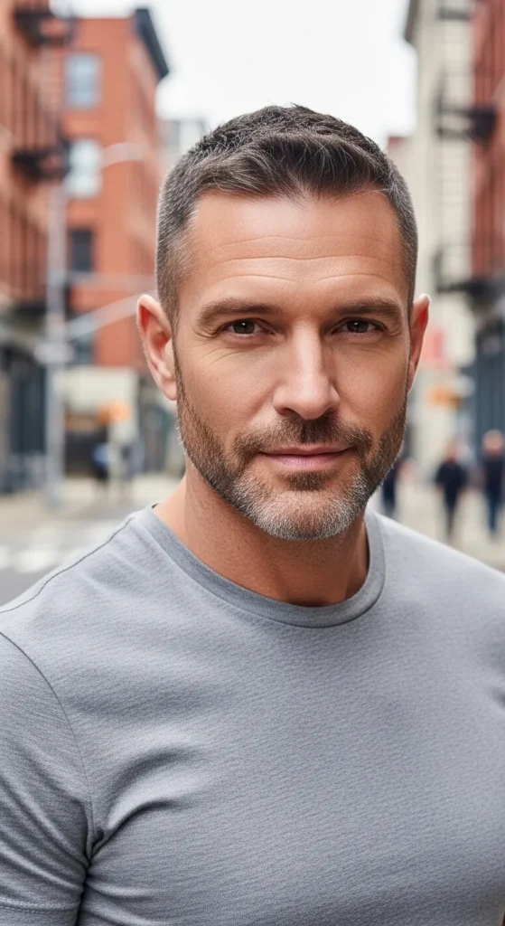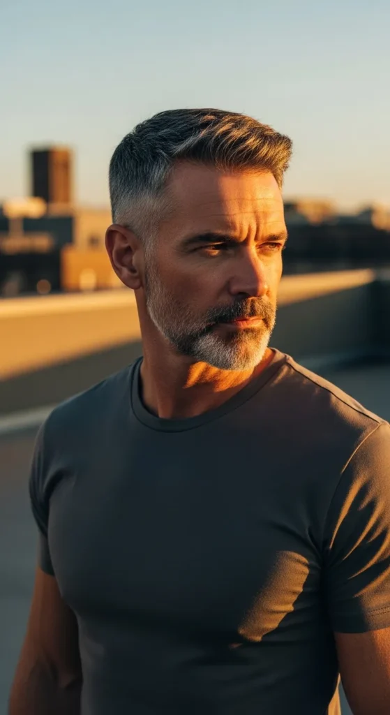 A subtle fade blended into salt-and-pepper hair creates a balanced, sophisticated look. The fade isn’t aggressive, it melts naturally into the texture on top, making it look intentional rather than trendy. It’s clean, sharp, and ideal for staying cool without losing maturity.