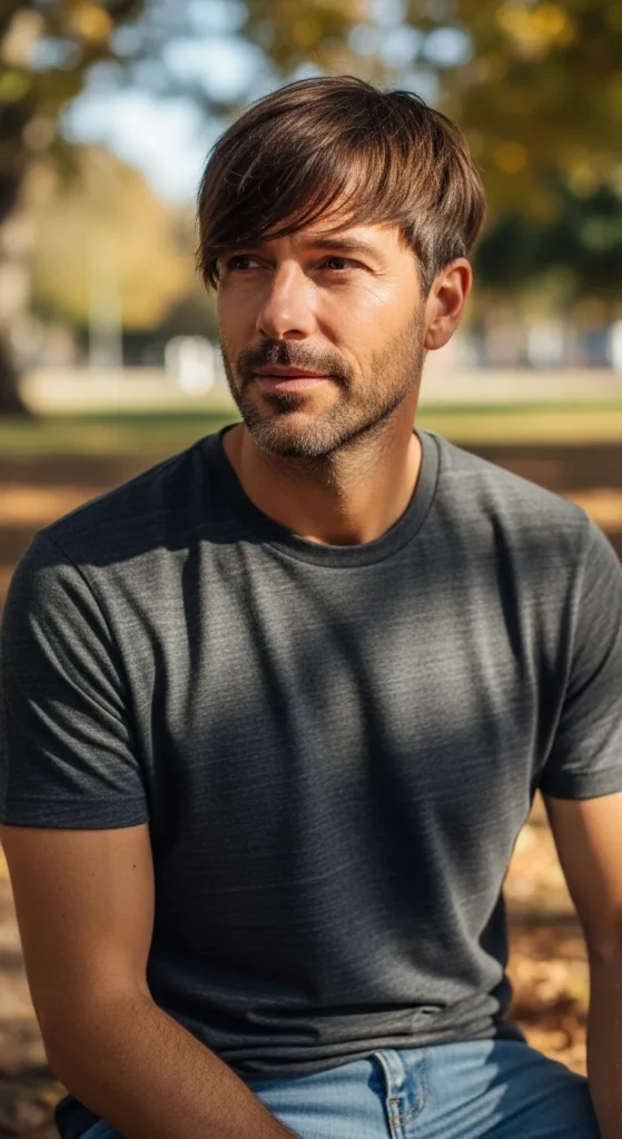 A light fringe combined with layered texture adds softness to the face. It works especially well for receding hairlines, offering a subtle yet stylish solution.