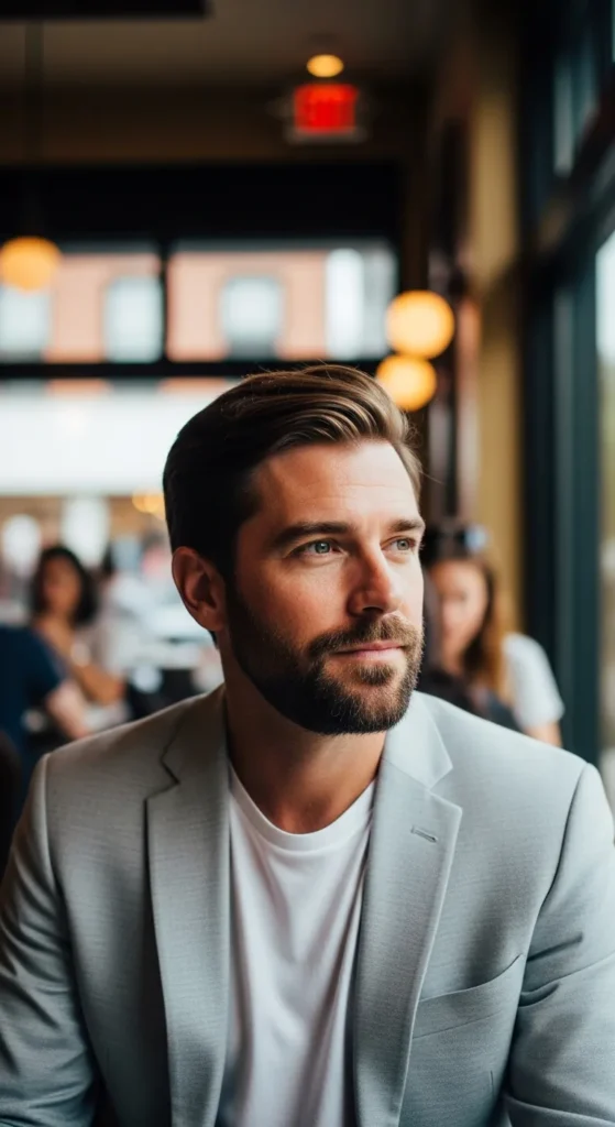 A relaxed Ivy League cut with slightly longer top and softly tapered sides. It’s refined but airy, allowing airflow through the hair while maintaining structure. This style feels intelligent and effortless, like someone who doesn’t chase trends but still looks ahead of them.