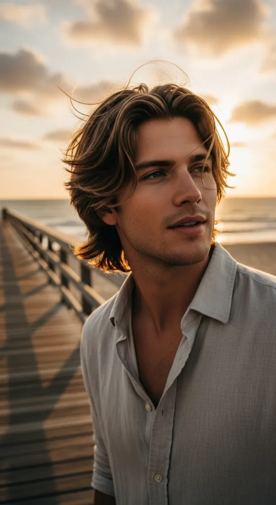 Barber Suggestion: A light sea salt spray enhances natural waves without making hair stiff or dry under sun exposure.