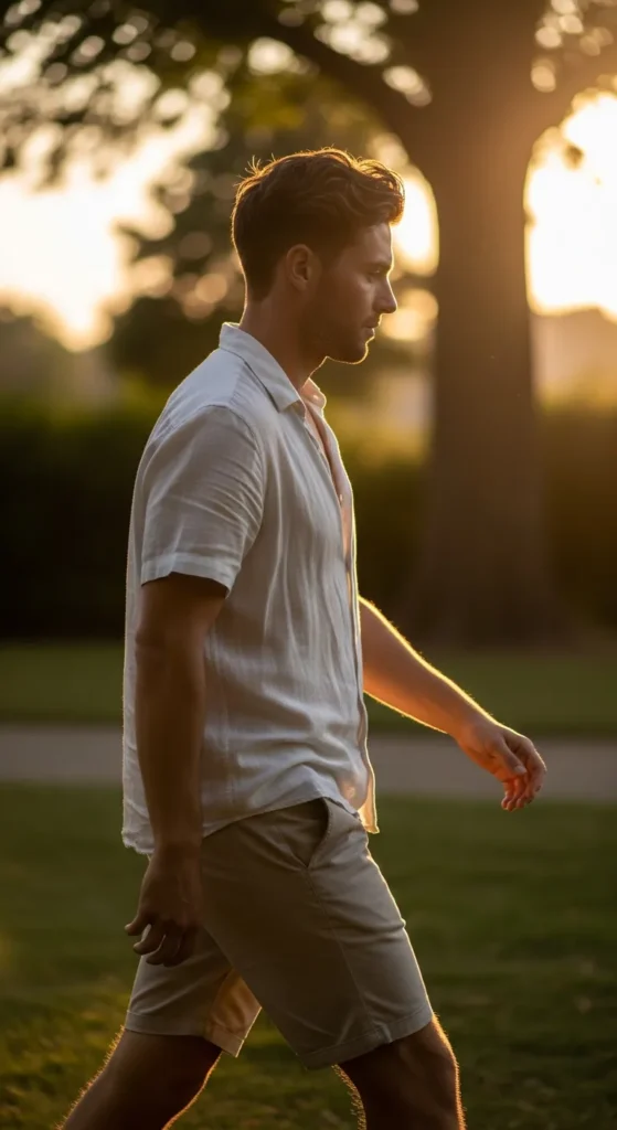 Barber Suggestion: Keep the neckline clean but soft. A harsh line fades fast in summer sweat, while a natural taper maintains its shape longer.