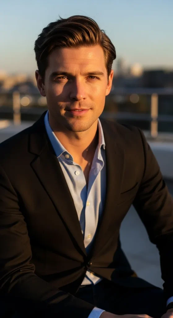 A lighter, less greasy version of the slick back gives structure without heaviness. It holds shape but still feels breathable, making it ideal for both workdays and summer evenings.