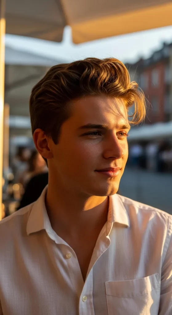 Barber Suggestion: Keep the front slightly shorter than a classic quiff. Shorter strands hold volume better and won’t collapse quickly in humid summer air.
