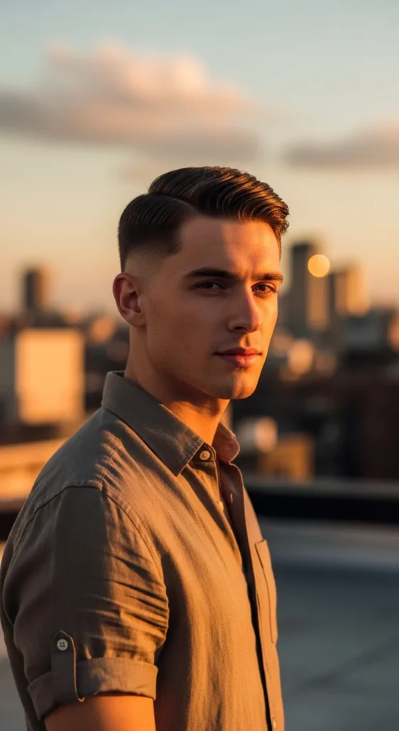 A subtle slick-back with a tight skin fade creates a refined look that doesn’t feel heavy. It’s ideal when you want something clean but still slightly polished.