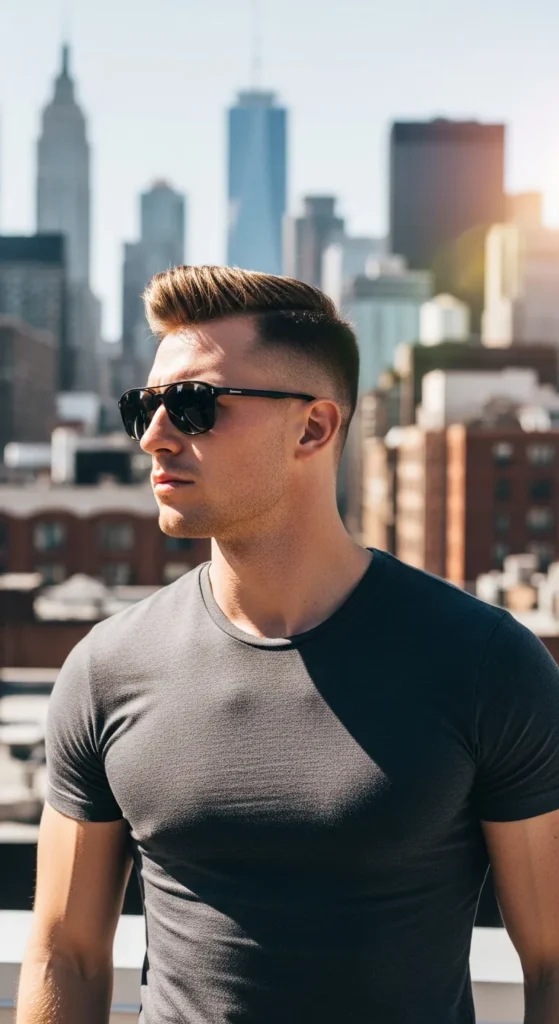 A shorter version of the classic quiff paired with a skin fade gives just enough lift without feeling bulky. It’s clean, stylish, and easy to manage in heat.