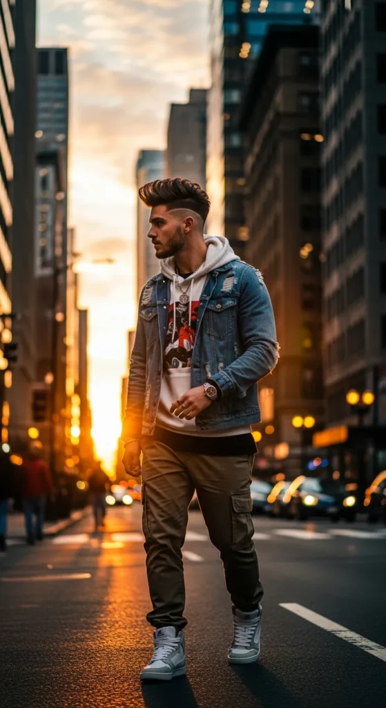 A structured blowout designed for city style. The hair is lifted with defined texture while the taper fade stays extremely clean, creating a modern and confident everyday haircut.