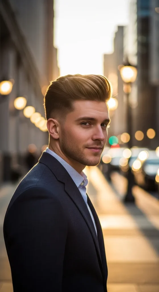 Barber Suggestion: Regular trims every three weeks keep the taper sharp. Once the sides grow out too much, the volume on top stops looking as dramatic.
