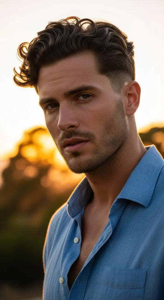 This style mixes volume with loose drifting texture. The top has relaxed movement rather than perfect structure, which makes the blowout look natural and effortless while the taper fade keeps the sides neat.
