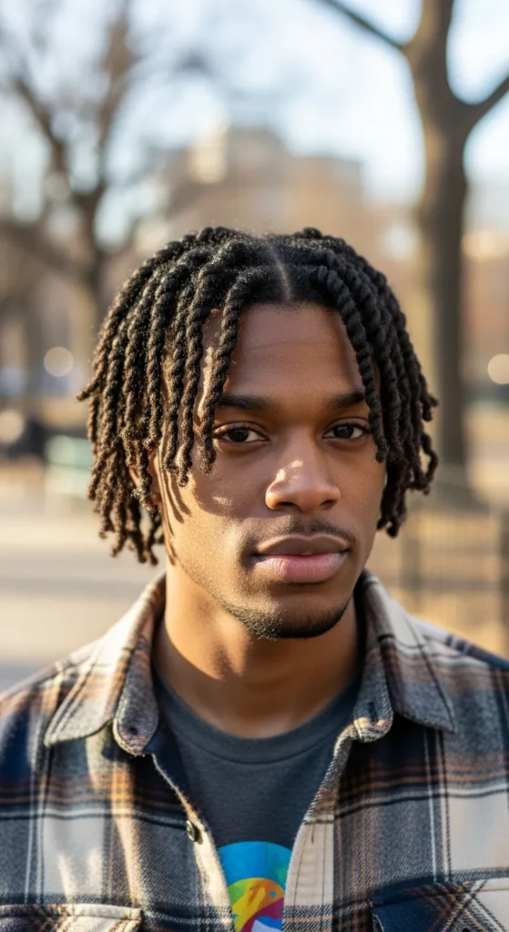 Barber Suggestion: Ask your barber for subtle layering instead of dramatic cuts. Gentle layering keeps the twists balanced and prevents uneven gaps in the style.