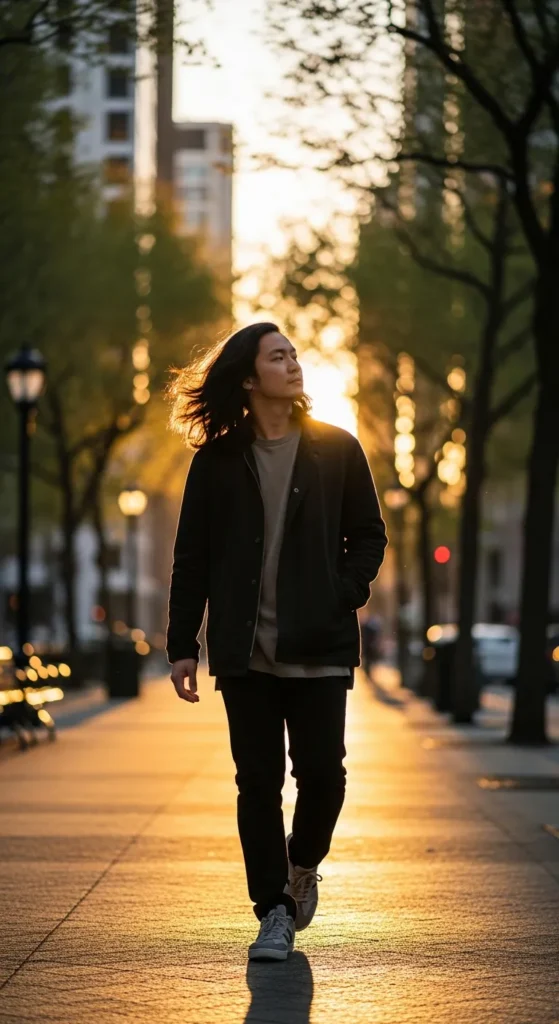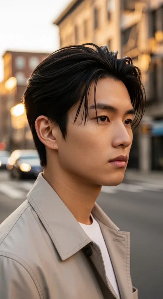 Barber Suggestion: Ask your barber for subtle thinning through the mid-lengths. Asian hair can get dense quickly, and controlled thinning keeps the airflow effect alive while preventing the shape from collapsing.